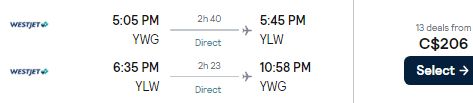 Vice-versa flights (Kelowna to Winnipeg) are also available for a similar roundtrip price.